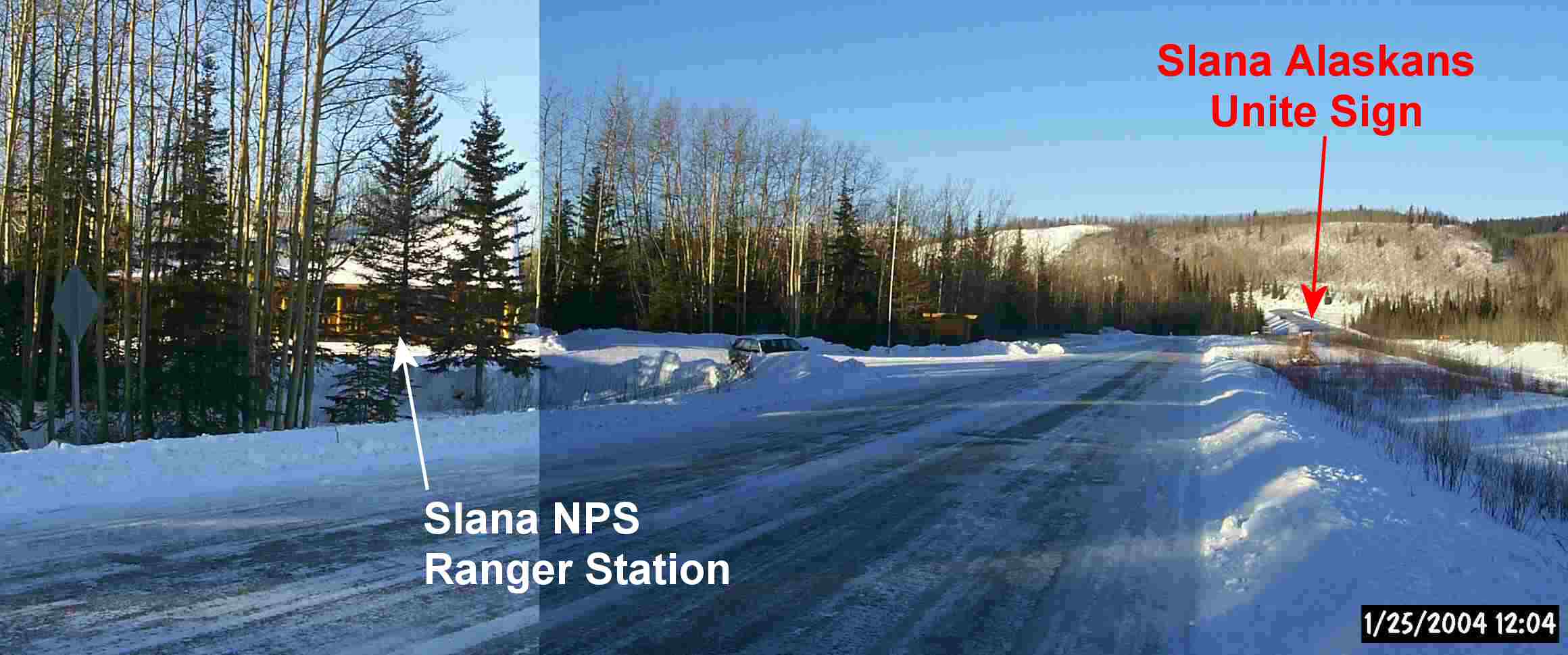 Slana Alaskans Unite sign faces the NPS ranger station
